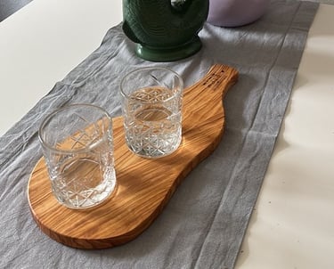 Ob rustikal oder modern – unsere hochwertigen Olivenholz-Servier- und Schneidebretter werden nach deinen Vorstellungen gefertigt.