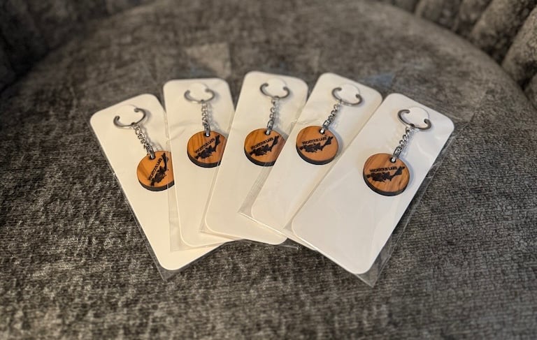 Klein, aber voller Bedeutung: Unsere Schlüsselanhänger aus Holz werden mit deinem Wunschmotiv oder Text per Lasergravur veredelt.